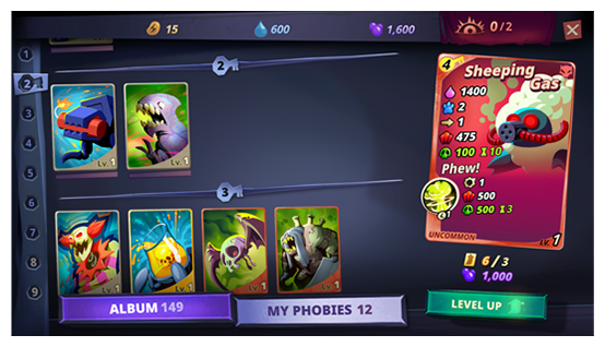 One of the challenges was designing and implementing the interface for over 150 unique phobies cards. This task required a meticulous approach, ensuring that the UI would effectively showcase each card's abilities while maintaining a smooth and intuitive user experience.